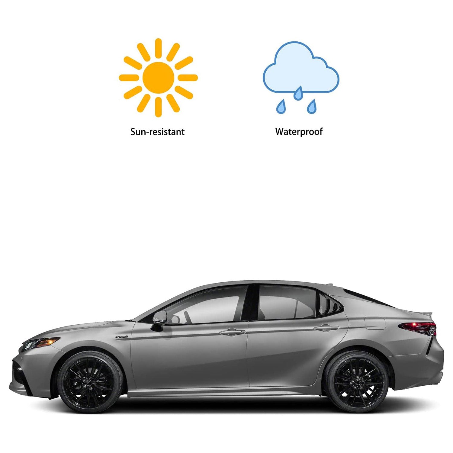 - According to original car design, fit the car perfectly, special design on the entire surface, scratch-resistant and durable. Water-proof,dust-free and easy to clean, not affect usual car washing. Protect the original window from scratching, adds a luxurious and elegant feel to your car, makes your car body look so sporty and aggressive. A cool decoration to upgrade the exterior car appearance. Classic colors, sporty and not tired of looking.