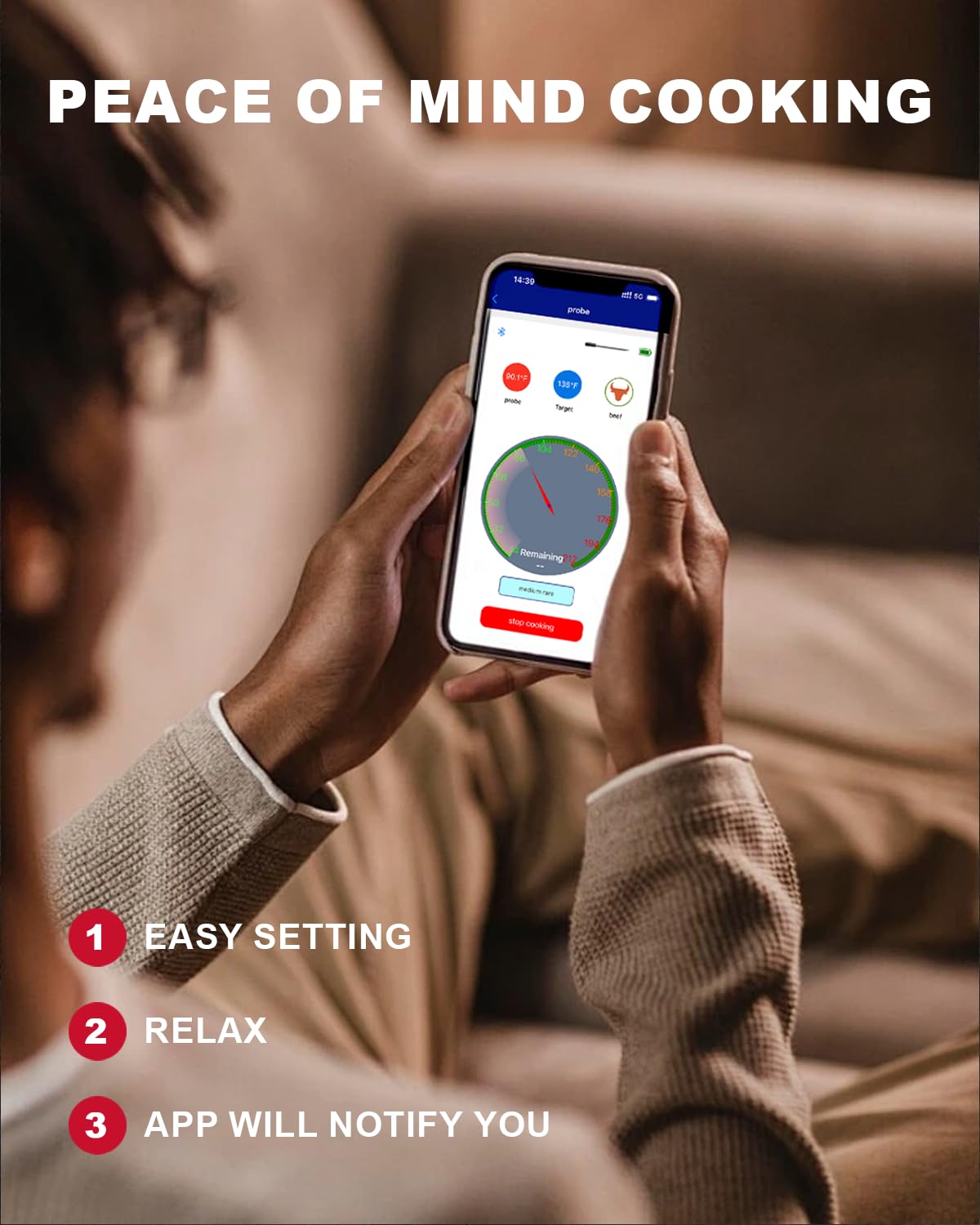 Offers a remarkable 730ft wireless range, allowing you to monitor food temperature in real-time without opening the grill or oven—ideal for use with smokers, air fryers, kamados, and various cooking setups.