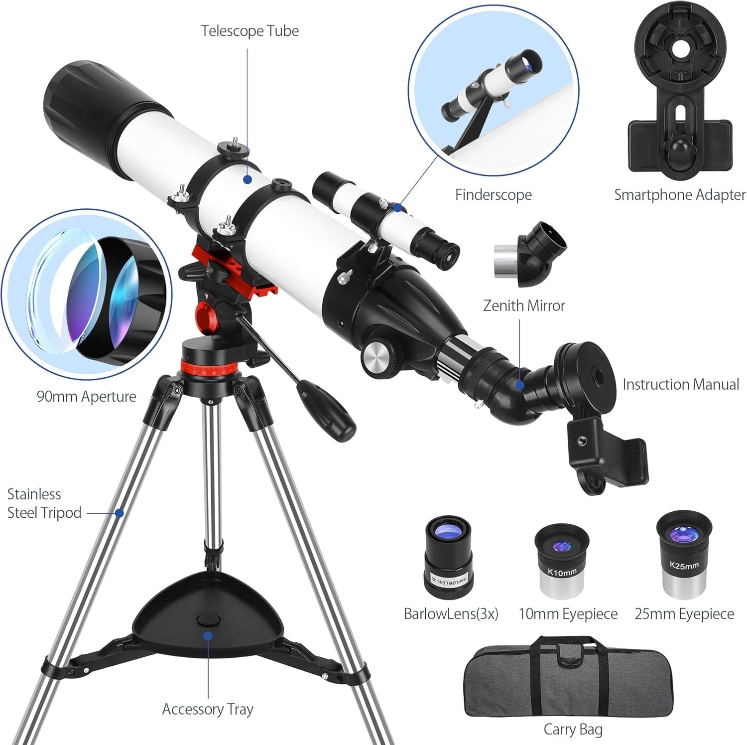 - 🔭🌌 90mm Aperture 800mm Refractor Telescope | High-Powered Astronomy for Adults, Kids & Beginners | Multi-Coated Optics + Phone Adapter & Carry Bag 🌟 #StargazingTech #AstronomyGear 🔭🌌 90mm Aperture 800mm Refractor Telescope | High-Powered Astronomy for Adults, Kids & Beginners | Multi-Coated Optics + Phone Adapter & Carry Bag 🌟 #StargazingTech #AstronomyGear