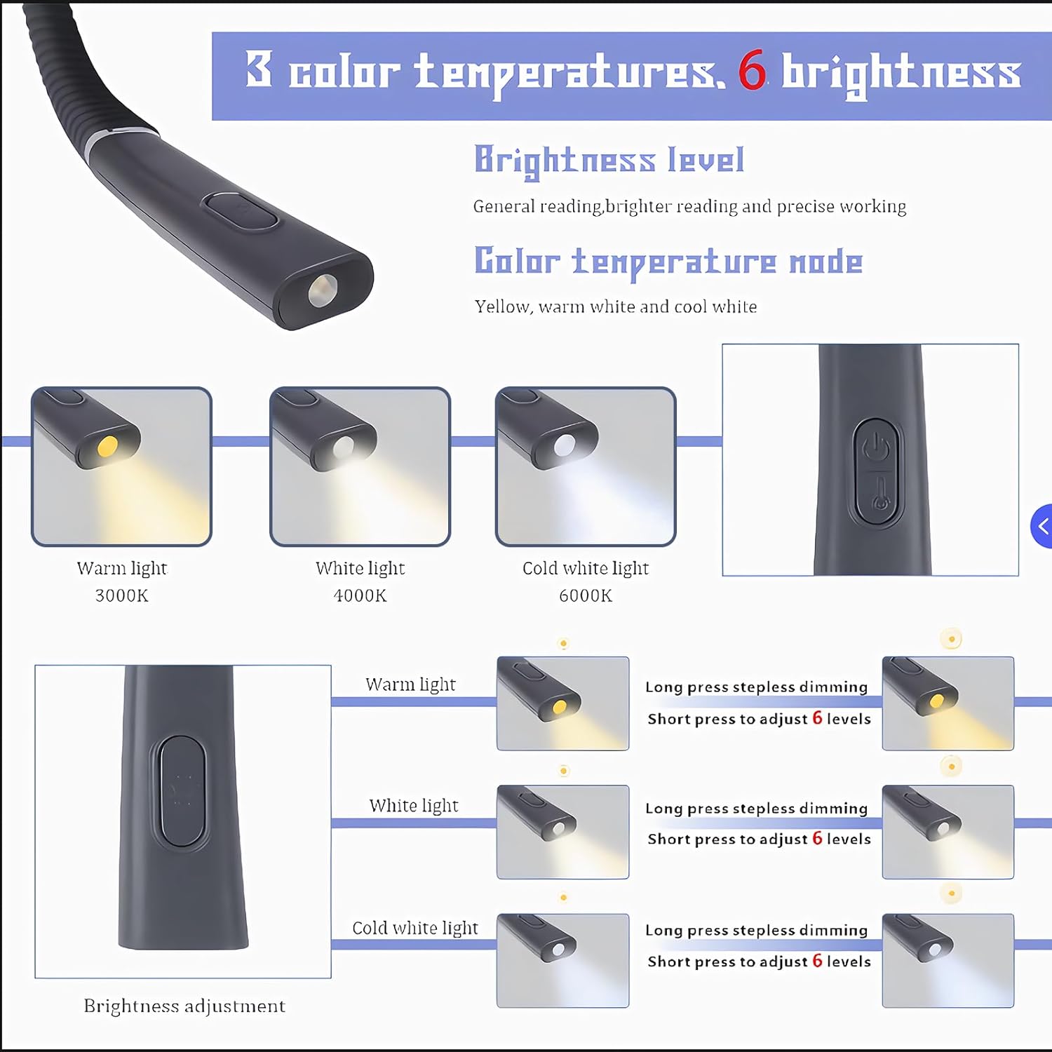 Our reading light not only delivers outstanding lighting but also offers various functionalities such as adjustable brightness, soft light, and a portable design, creating an ideal reading environment for you. Let our reading light be your trusted companion, enabling you to indulge in the joy of reading.
