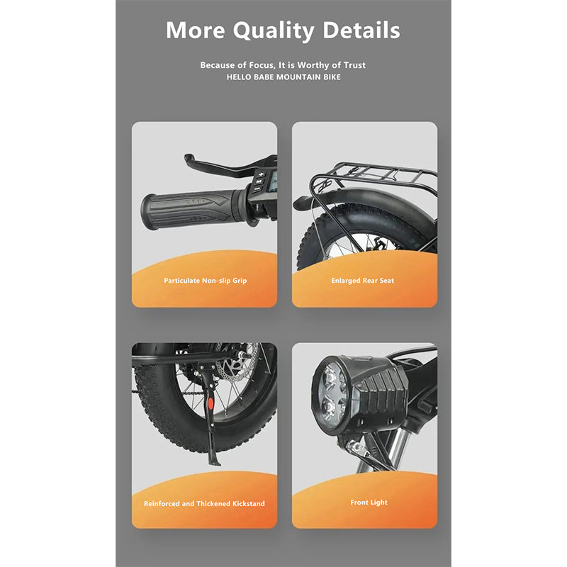 Equipped with a powerful motor and Shimano precision gear-shifting system for smooth multi-speed adjustment, strong hill-climbing ability, and responsive control.
