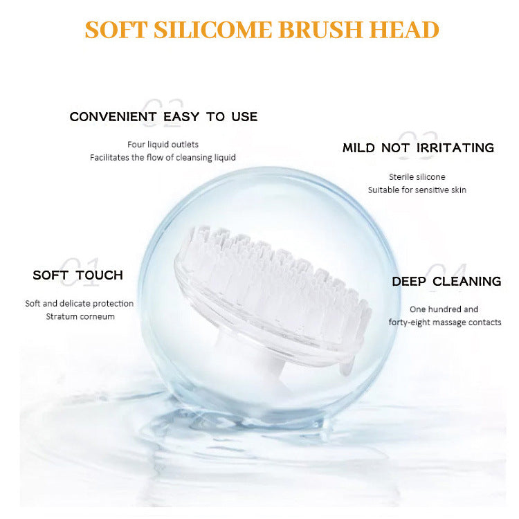 Equipped with a sterile silicone brush head with 148 massage contacts, four liquid outlets, and a face-fitting design for SPA-grade deep cleaning and enhanced mite removal.