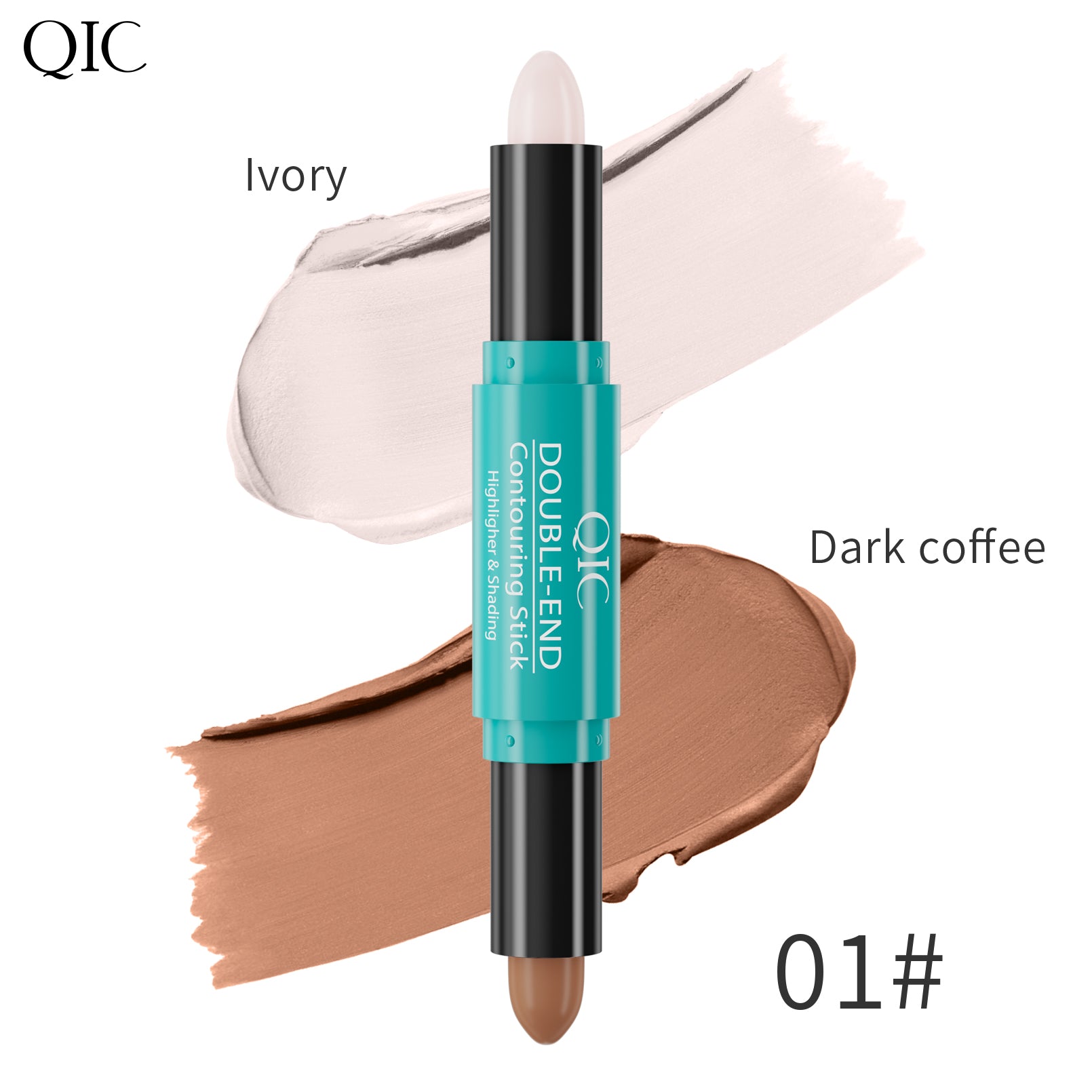 Features a convenient double-ended stick with one end for highlighting (e.g., ivory, pink shades) and the other for contouring (e.g., dark coffee, light coffee), enabling precise 3D sculpting in one product.